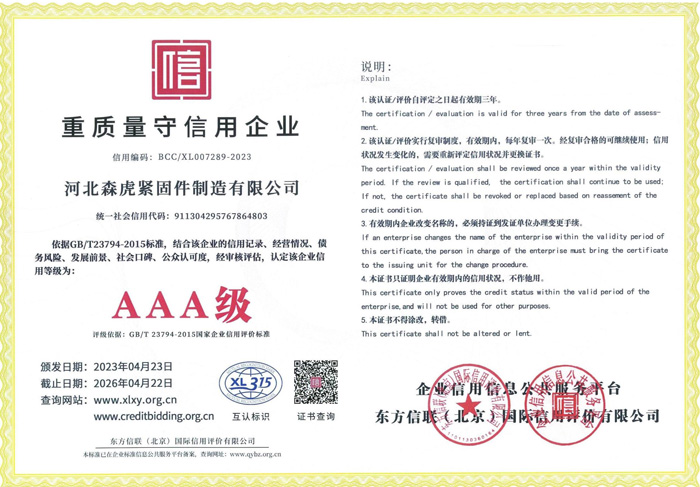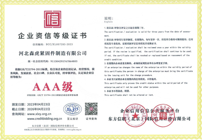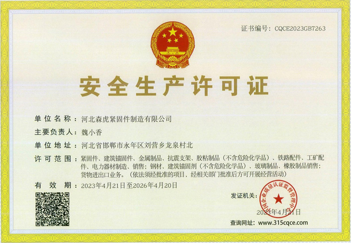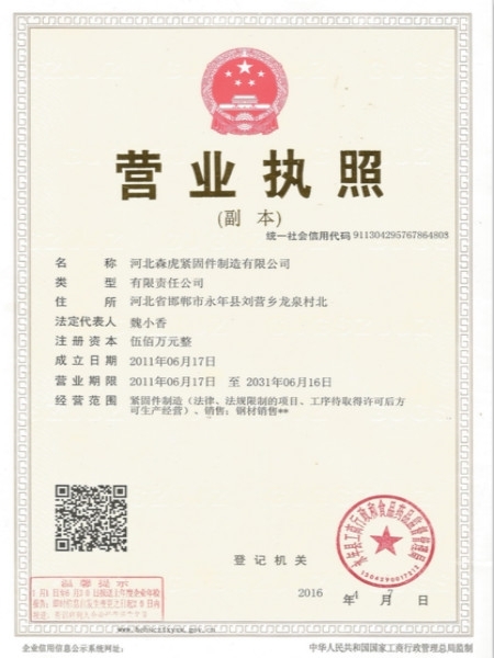 歡迎新老客戶來(lái)電垂詢,來(lái)廠參觀考察,洽談合作河北森虎緊固件制造有限公司